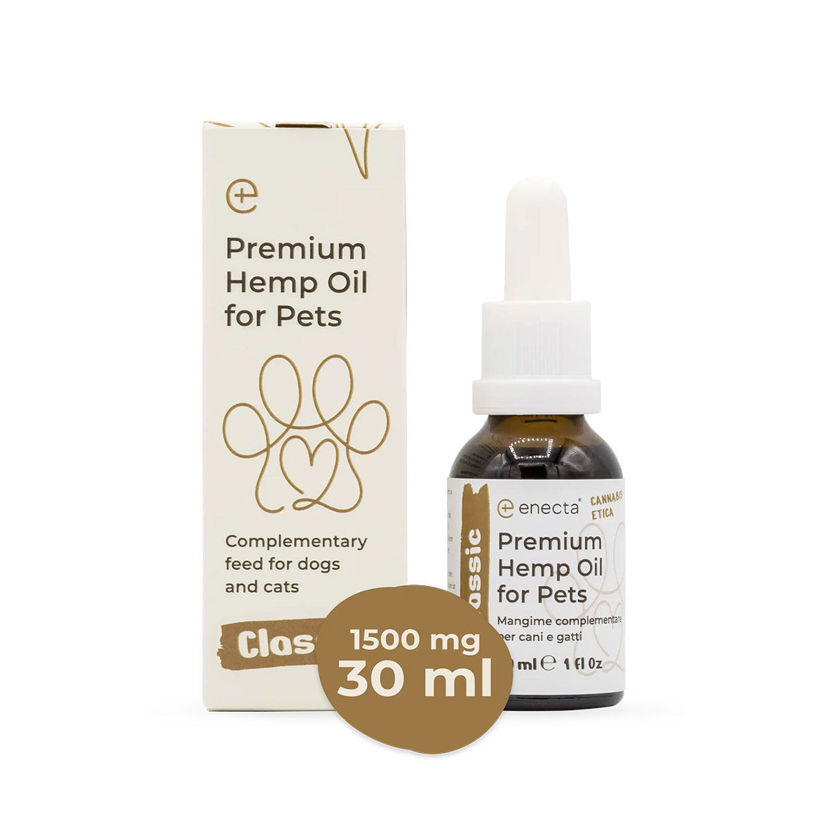 Enecta Έλαιο Κάνναβης για Κατοικίδια 1500mg – 30ml. Το Premium Hemp Oil για κατοικίδια είναι ένα συμπλήρωμα με Ωμέγα-3 και Ωμέγα-6 λιπαρά οξέα (ειδικά σχεδιασμένο για κατοικίδια). Βοηθά στη διατήρηση ενός λαμπερού τριχώματος, διατηρώντας υγιές το δέρμα. Το προϊόν αυτό είναι ιδανικό για σκύλους ή γάτες, κάθε ηλικίας και ράτσας.