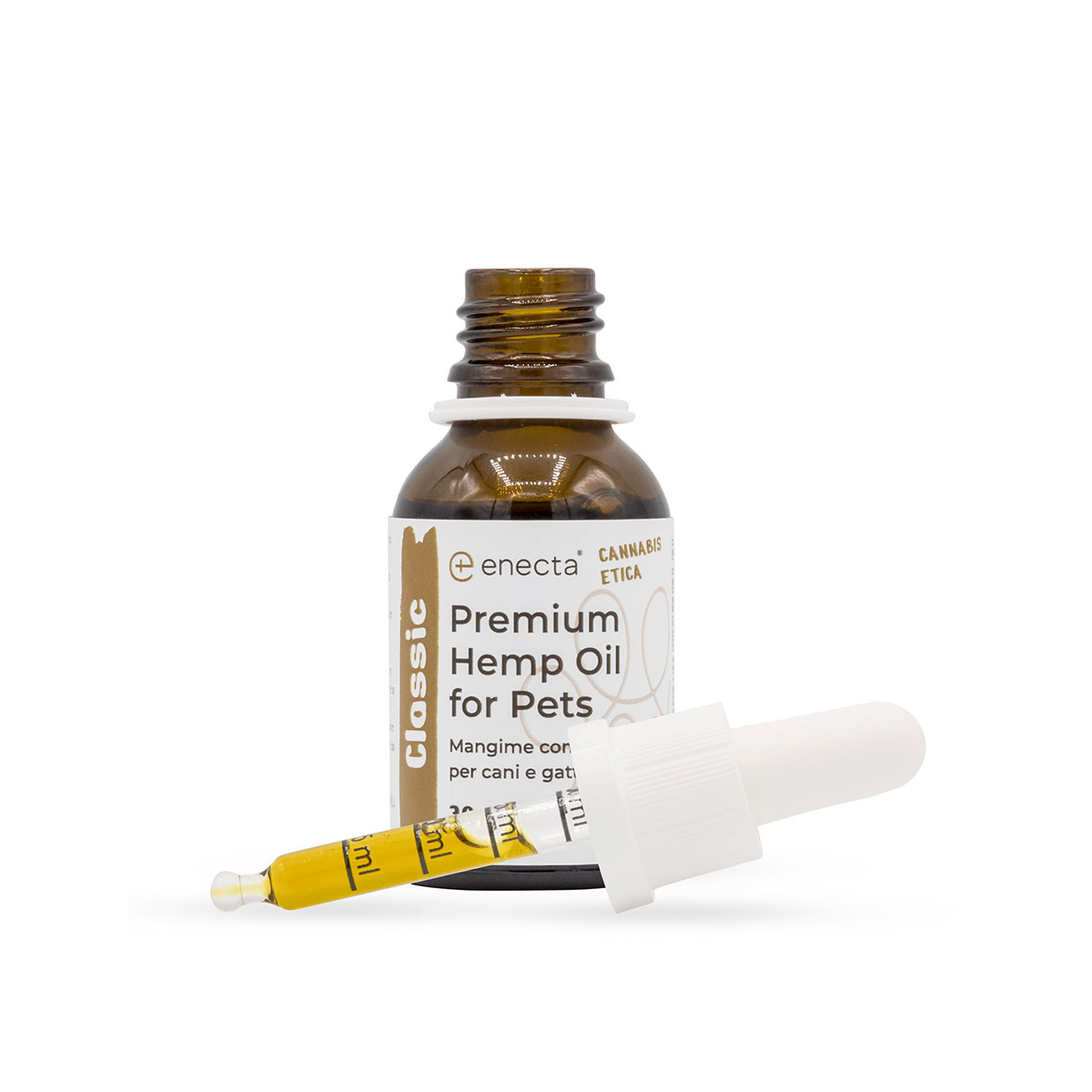 Το Premium Hemp oil για κατοικίδια της Enecta, παράγεται από ποικιλίες κάνναβης του είδους Cannabis Sativa L., πλούσιο σε Φυτοκανναβινοειδή και με χαμηλό, σχεδόν μηδενικό, ποσοστό THC ( ίσο ή λιγότερο από 0.2%, όπως προβλέπεται από τον κανονισμό (ΕΚ) αρ. 1782/2003). Πρόκειται για πιστοποιημένη ποικιλία Κάνναβης που καλλιεργείται σε επιλεγμένα εδάφη της Ιταλίας, κατά τα πρότυπα της Ορθής Γεωργικής Πρακτικής (Guidelines on Good Agricultural and Collection Practice, GACP), χωρίς ζιζανιοκτόνα ή φυτοφάρμακα, διατηρώντας υψηλές προδιαγραφές στην ασφάλεια και την ποιότητα.