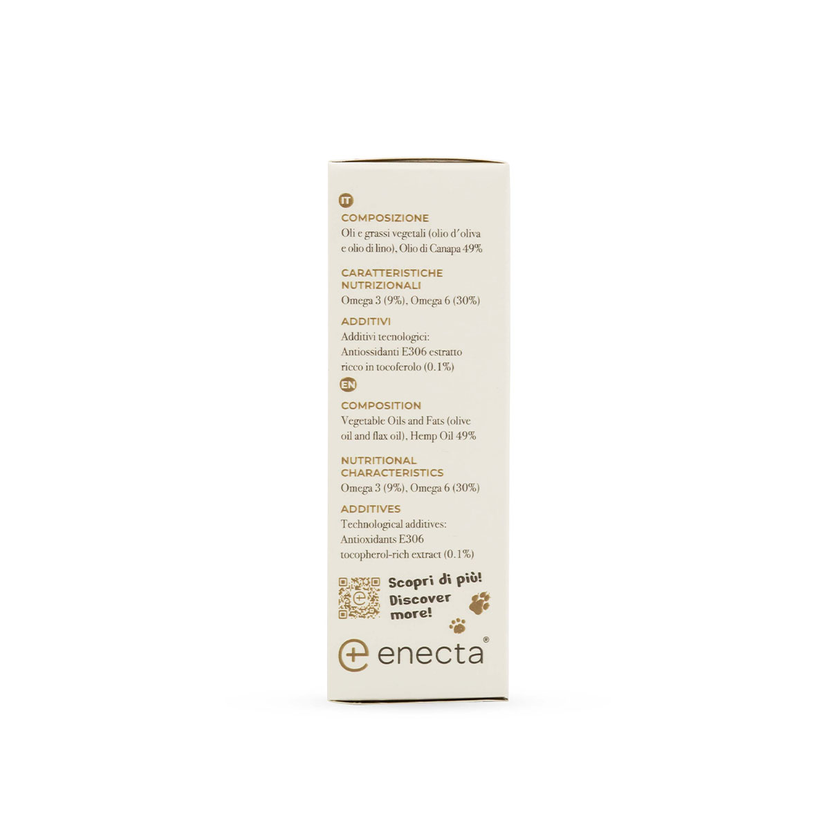 Enecta Έλαιο για όλα τα κατοικίδια!Το Premium Hemp Oil για κατοικίδια είναι συμπλήρωμα με Ωμέγα-3 και Ωμέγα-6 λιπαρά οξέα (ειδικά σχεδιασμένο για κατοικίδια): συμβάλλει στη διατήρηση του λαμπερού τριχώματος, προστατεύοντας την επιδερμίδα. Το προϊόν αυτό είναι ιδανικό για σκύλους και γάτες όλων των ηλικιών, κάθε ράτσας.
